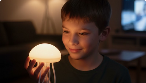 LumniGlow™ combines soft LED color transitions with lifelike jellyfish movement to create a naturally soothing, hypnotic glow — a mesmerising way to unwind for everyone.
